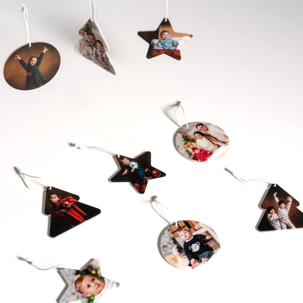 Gli addobbi natalizi TREE PLEX renderanno l'albero di Natale dei tuoi clienti ancora più unico, grazie alle fotografie di familiari e amici stampate su eleganti pezzi in acrilico di dimensioni 8x8 cm. Disponibili in vari formati a tema natalizio, questi ornamenti aggiungeranno un tocco personale e festoso all'atmosfera delle celebrazioni